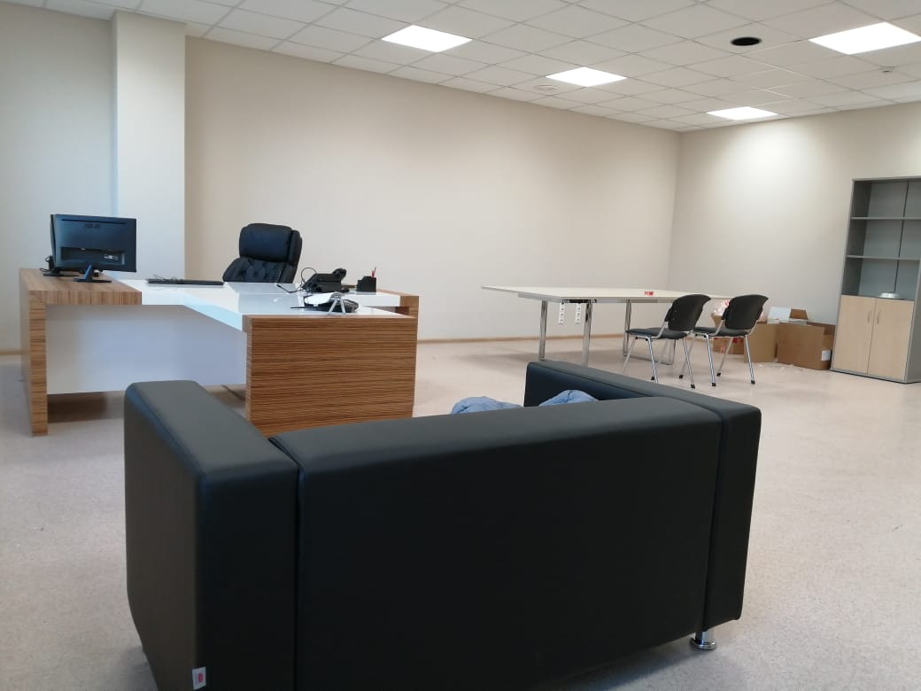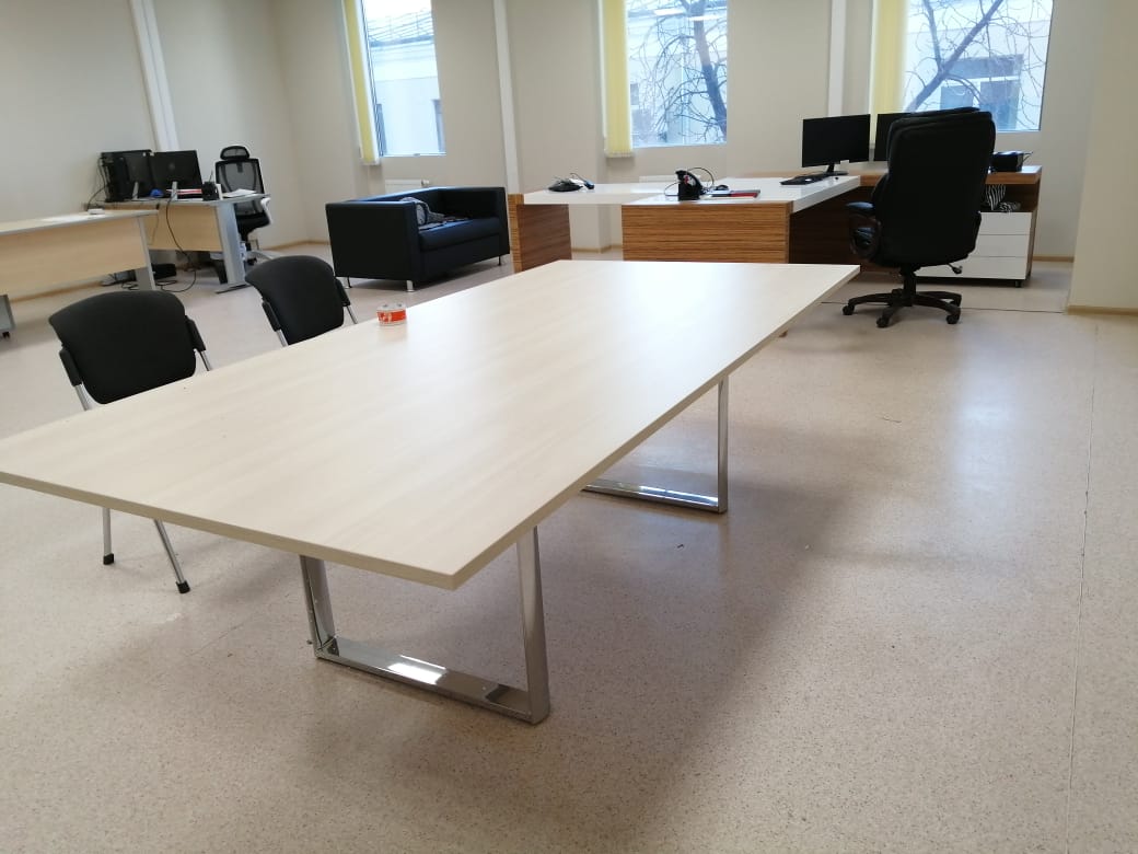 И в дополнении ко всему стильный и комфортный стол для переговоров Orbis-Carre Meeting и диван Аполло.