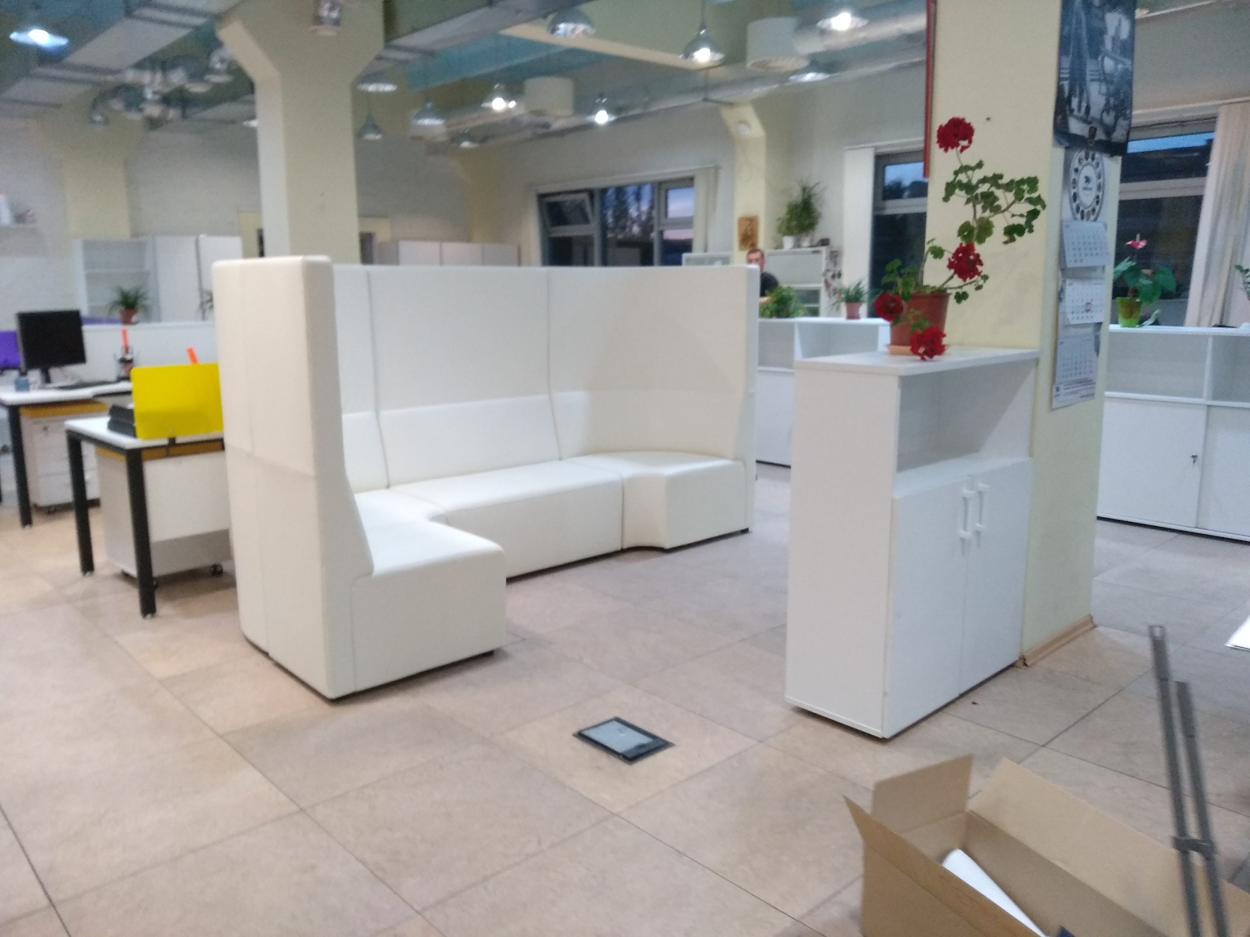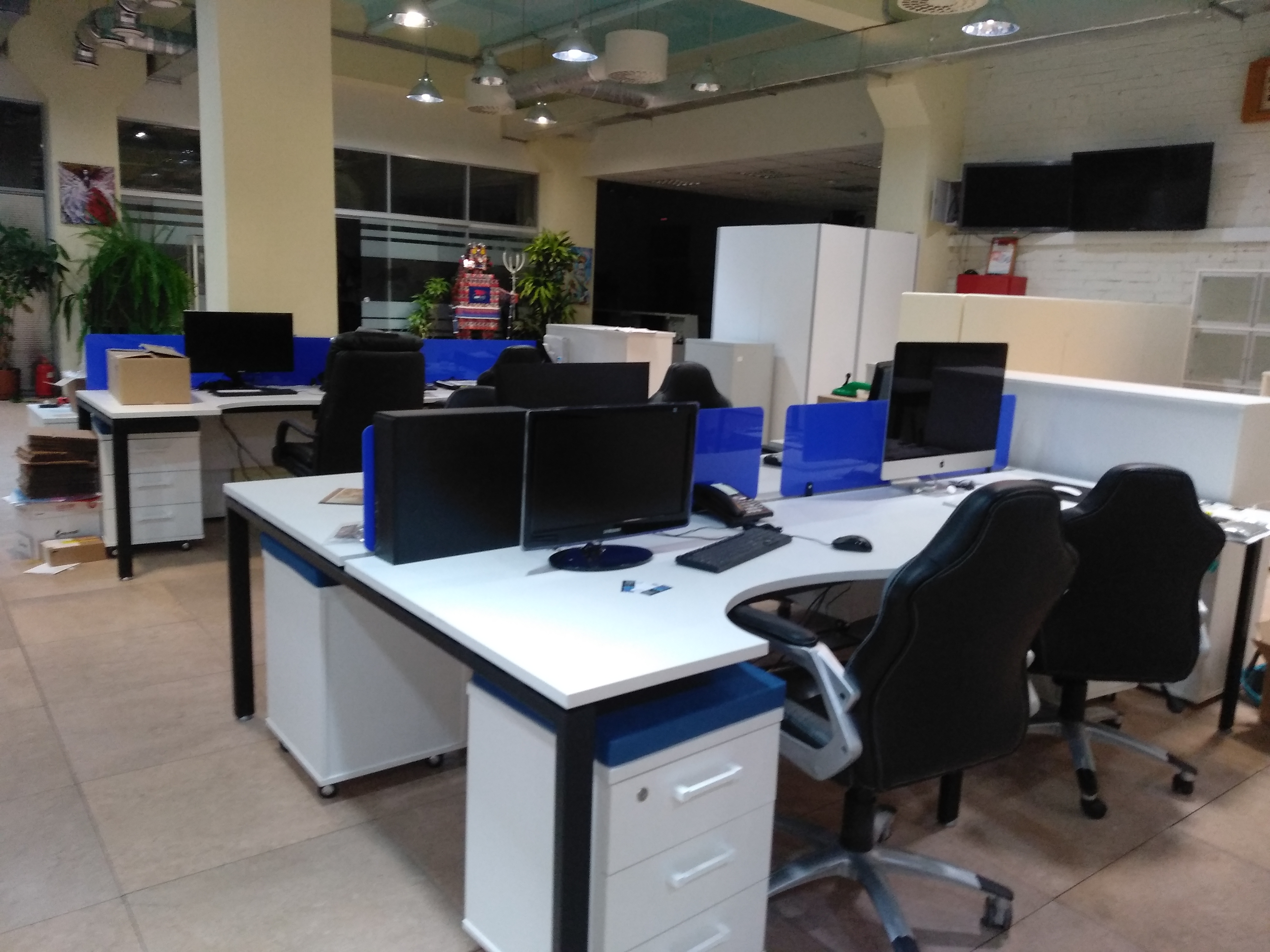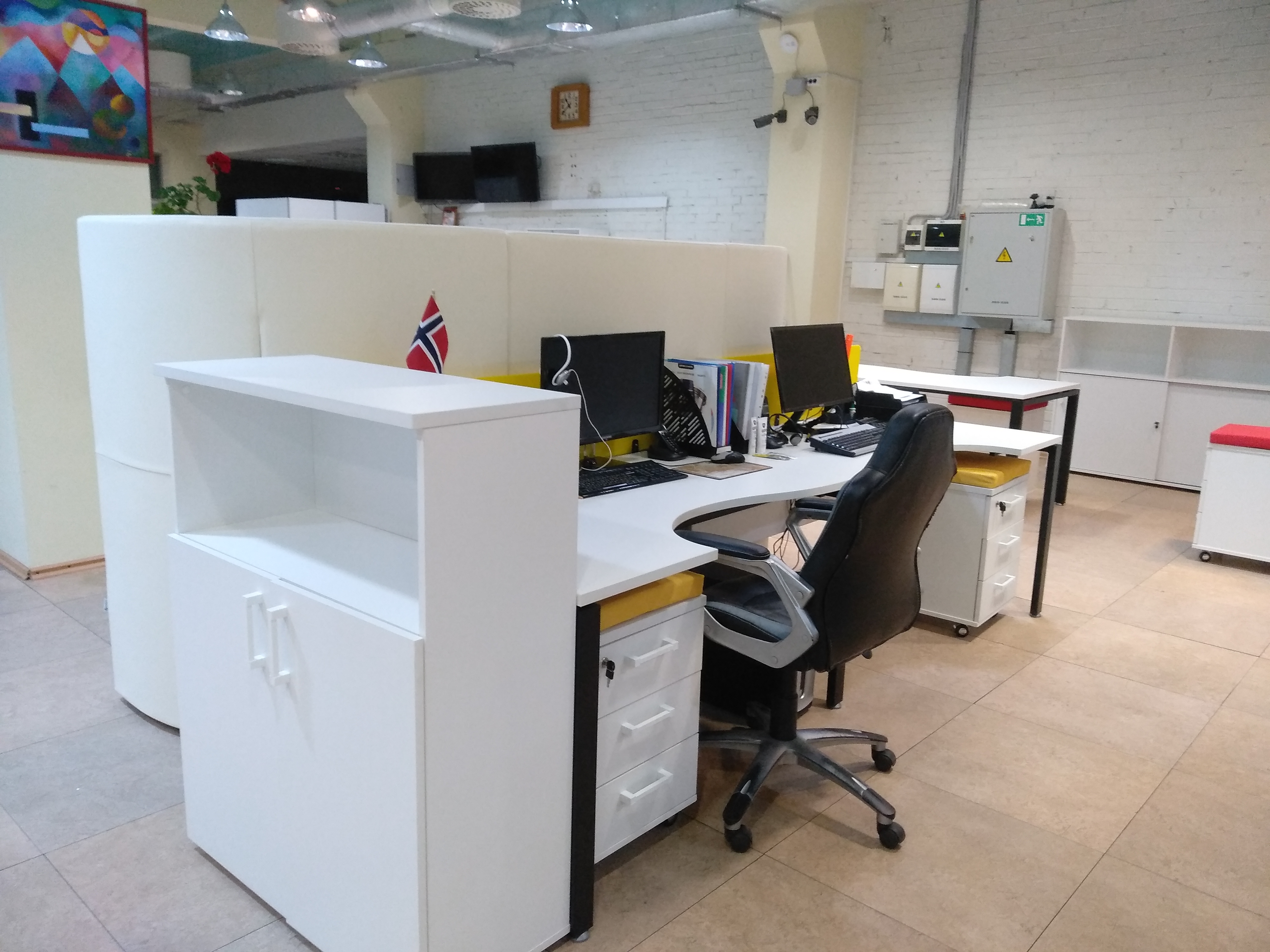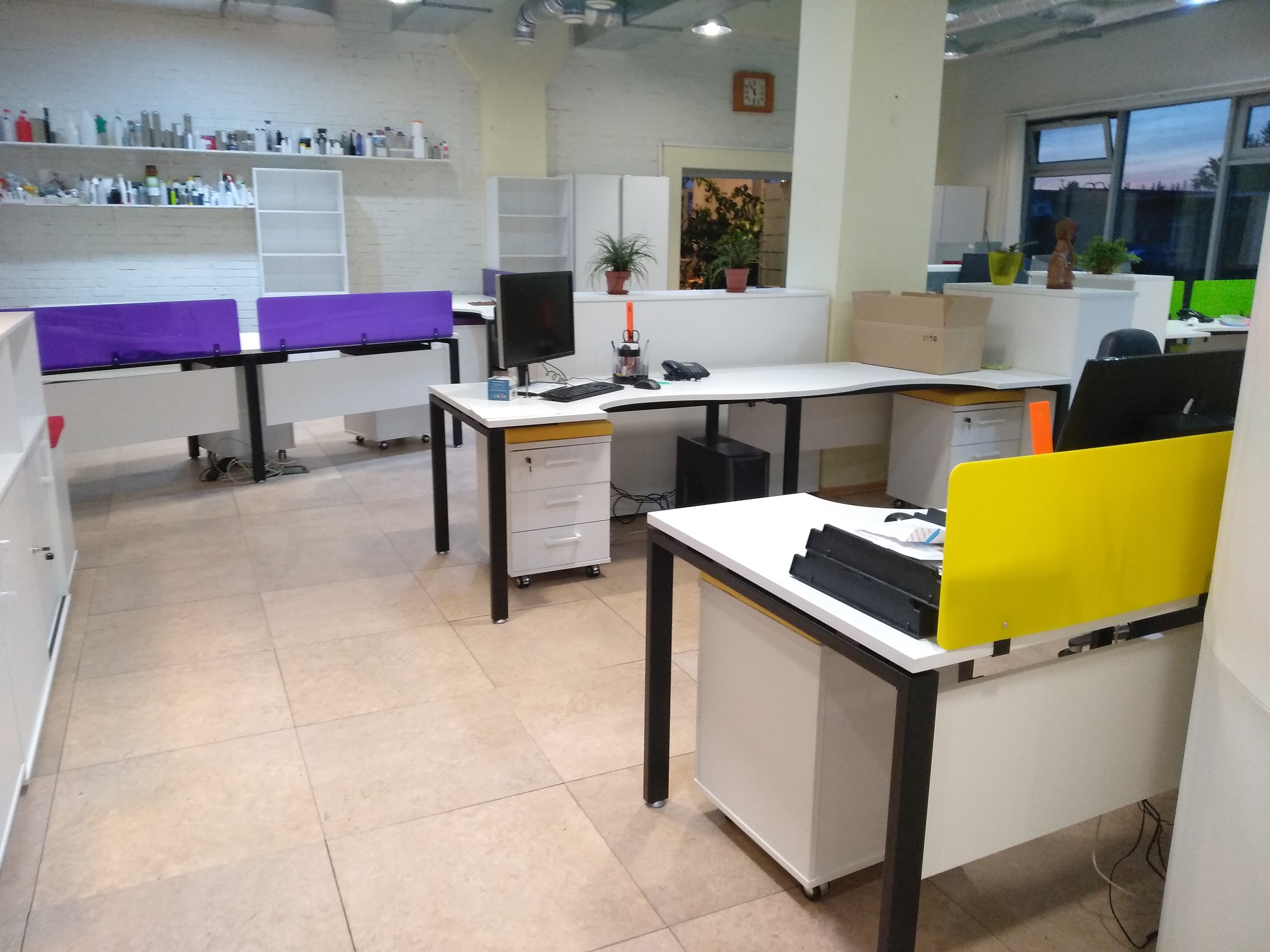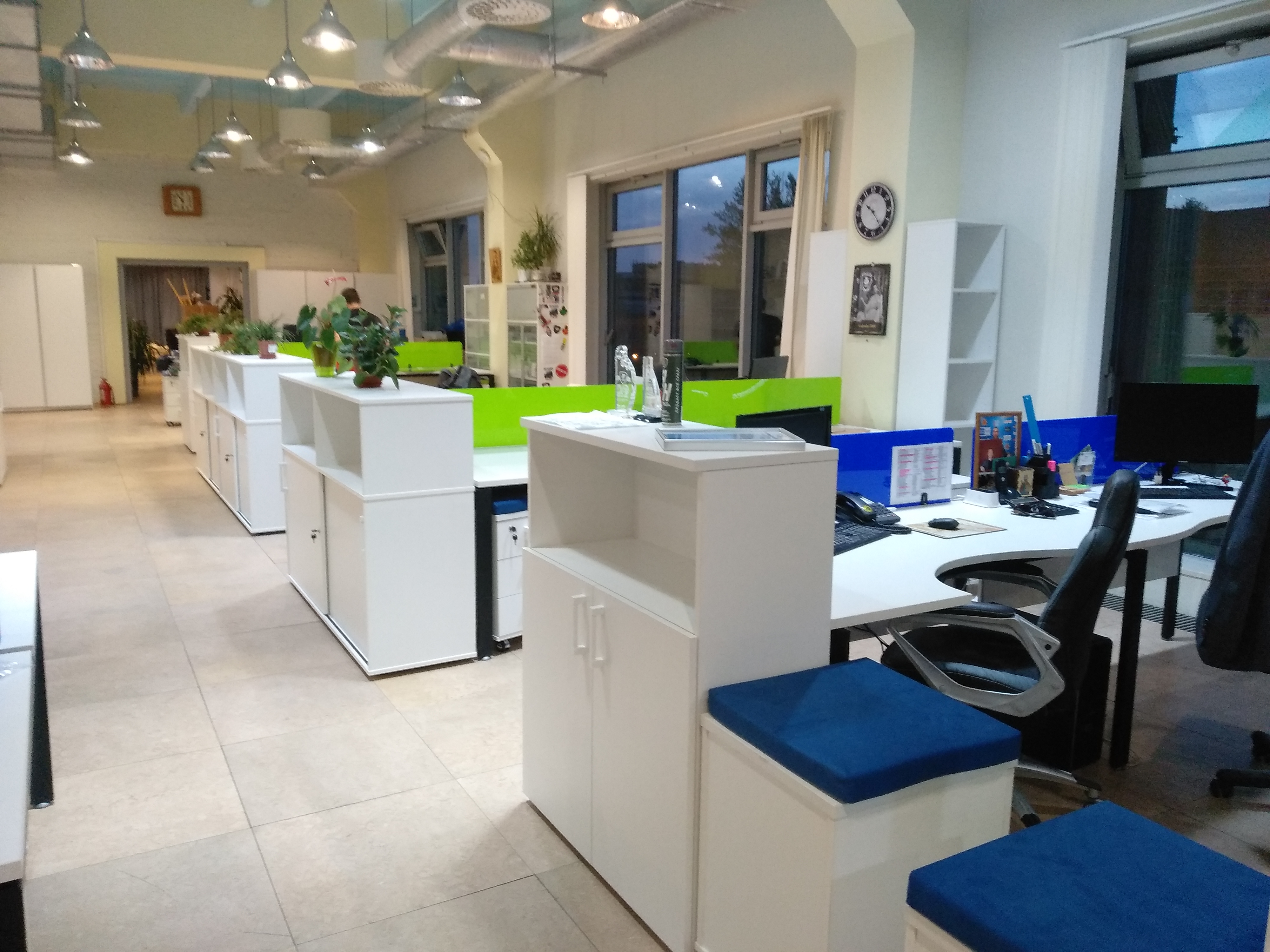 К нам обратилось руководство компании ООО “ВМПАвто” с просьбой обустроить большое офисное пространство для их сотрудников. Заказчик попросил сделать офис стильным и ярким. Для этого мы выбрали мебель серии СМАРТ. Предпочтение было отдано изделиям белого цвета. В качестве ярких акцентов мы использовали экраны между рабочими столами и покрытие для тумб, которые можно применить в качестве сидячего места. В синем, красном и салатовом цвете.